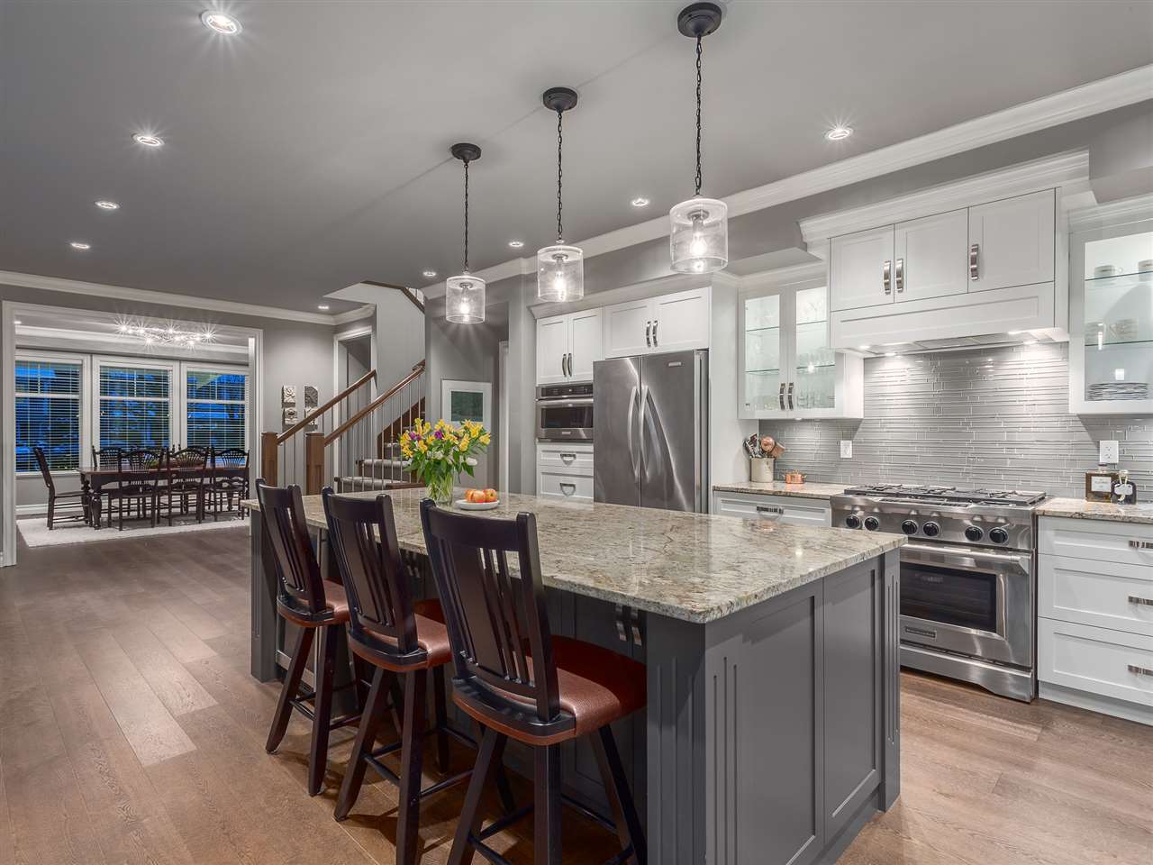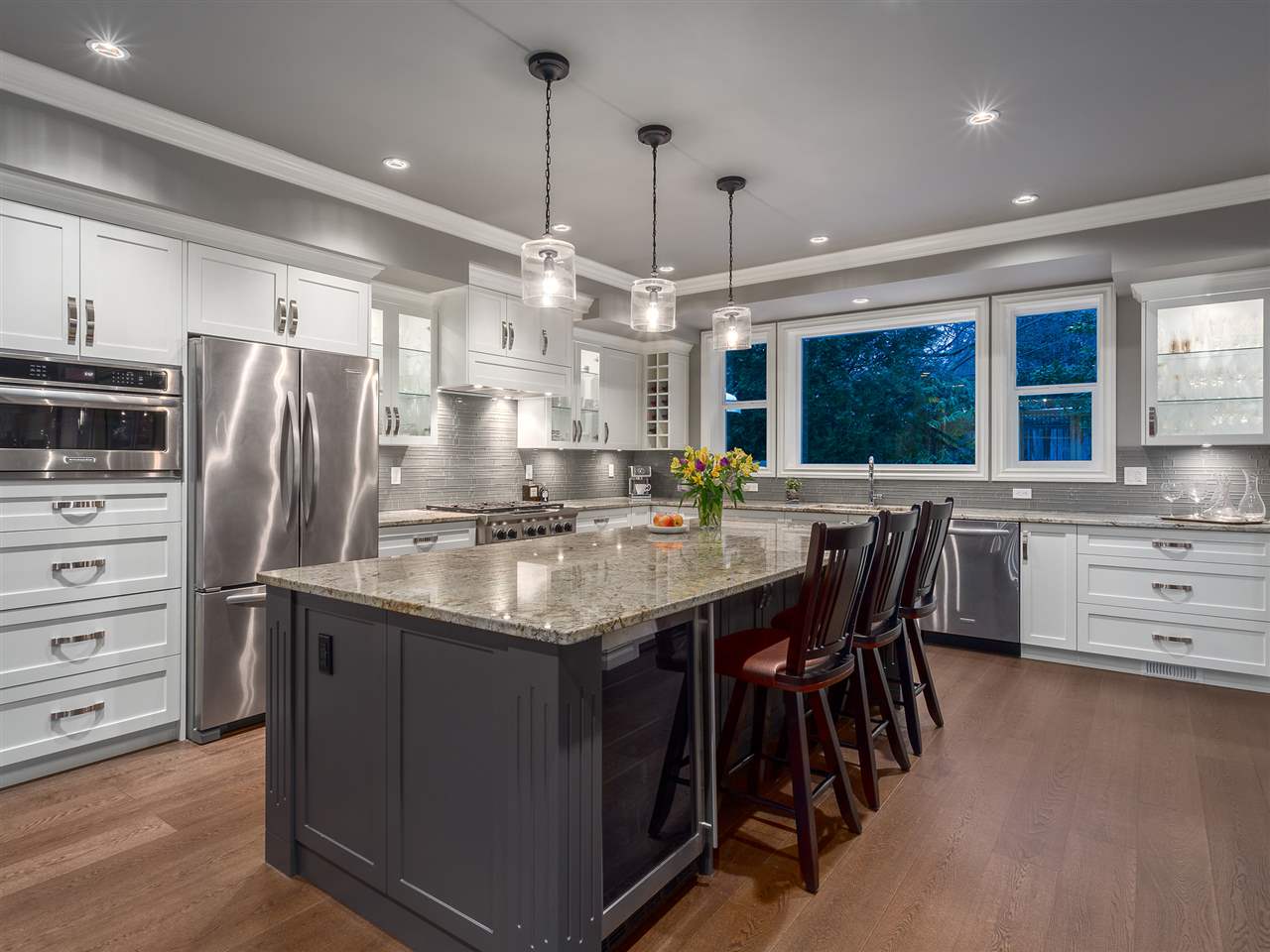 A rarely offered, uniquely beautiful Canyon Heights home that will appeal to the most discerning buyer. No detail is overlooked in this recently built property. Along with the unparalleled North Shore location, the home boasts designer finishes throughout, an open-plan kitchen and great room with coffered ceilings, light-filled oversized windows, custom cabinetry with granite and marble countertops, and engineered wide-plank Oak floors. Thoughtfully conceived interiors feature four bedrooms on the top floor, including a large master suite, while downstairs includes a generous-sized recreation room, gym and spacious two-bedroom legal suite, ideal for in-laws, guests or additional rental income. It doesn’t get any better than this perfectly located, turn-key ready Canyon Heights home.