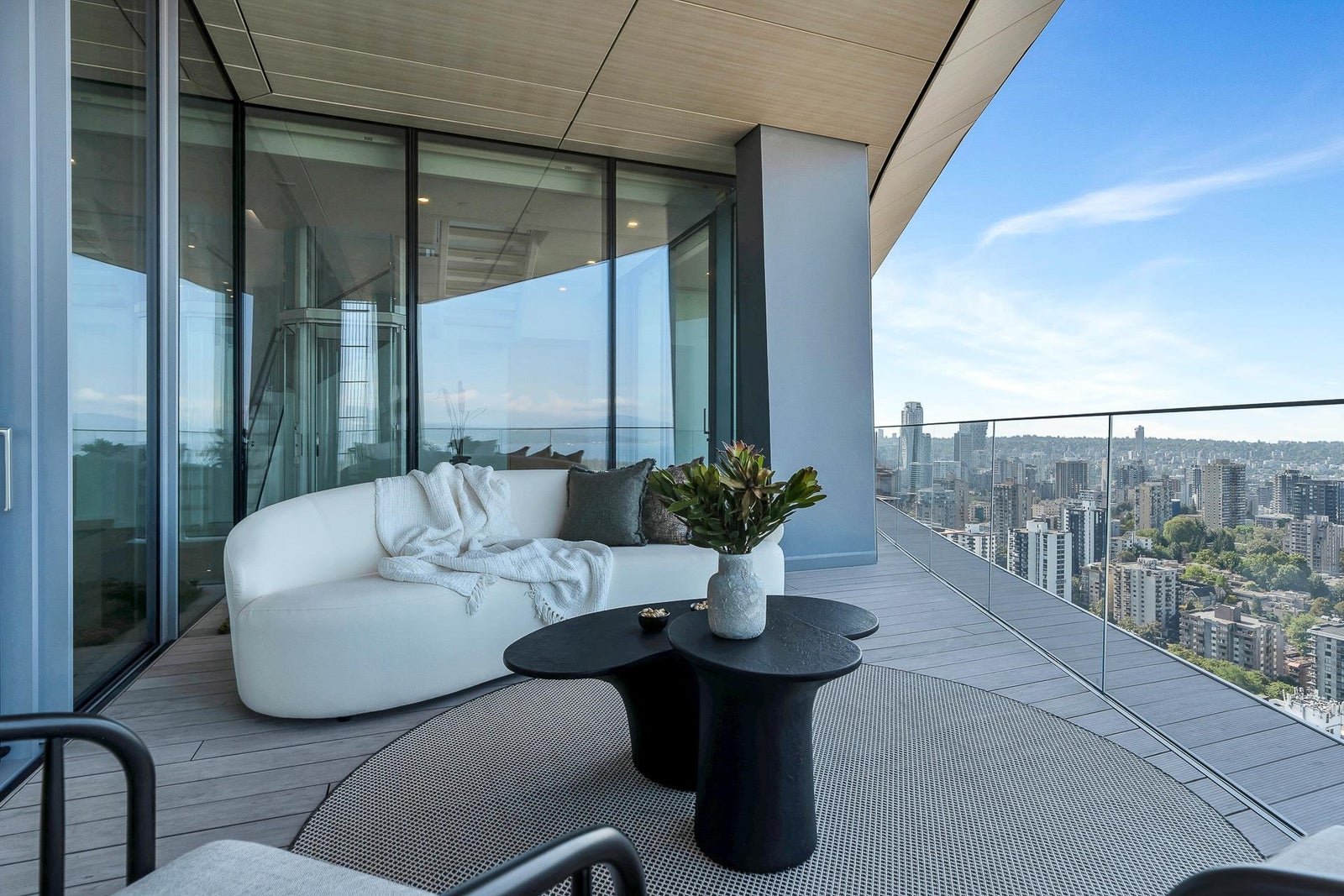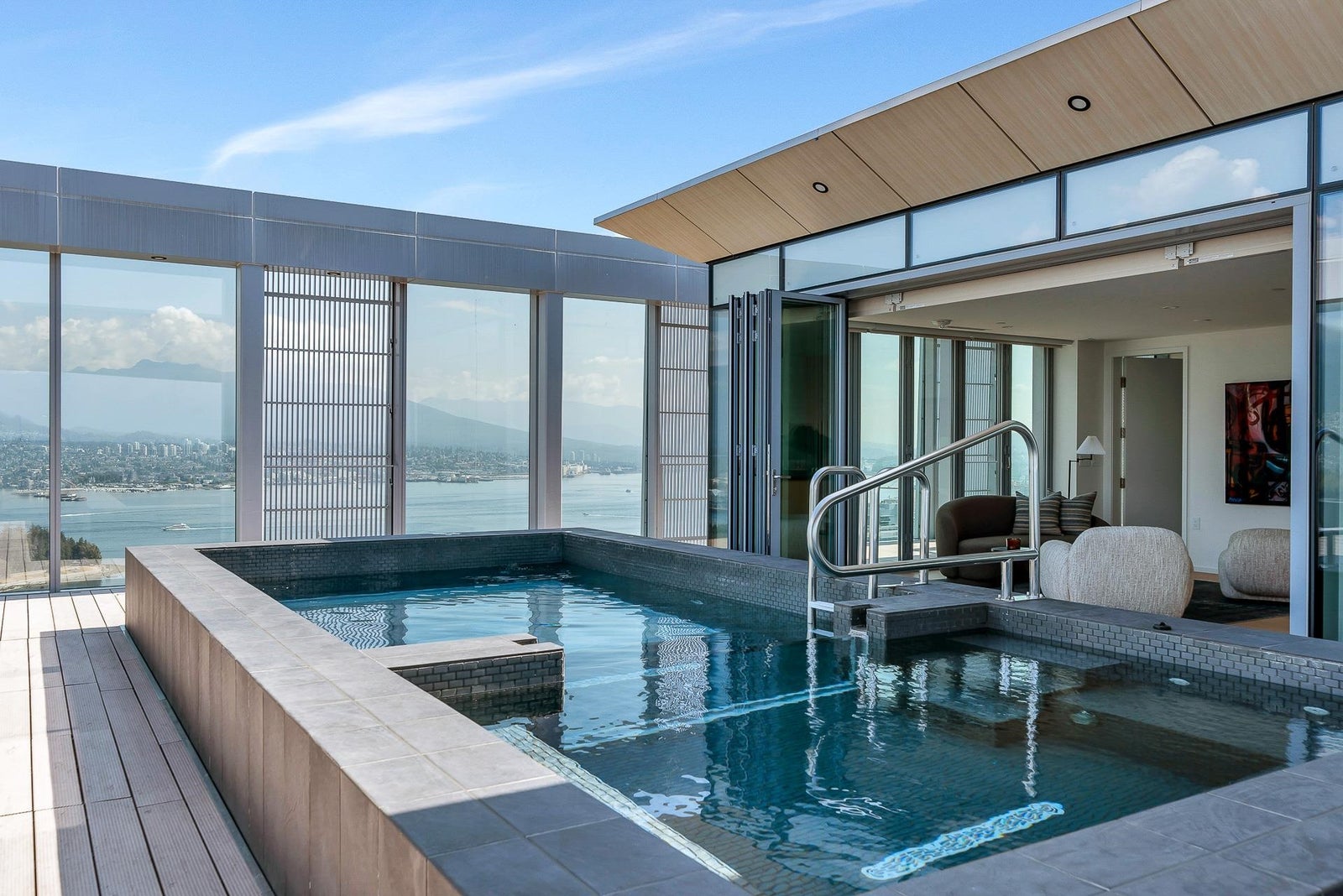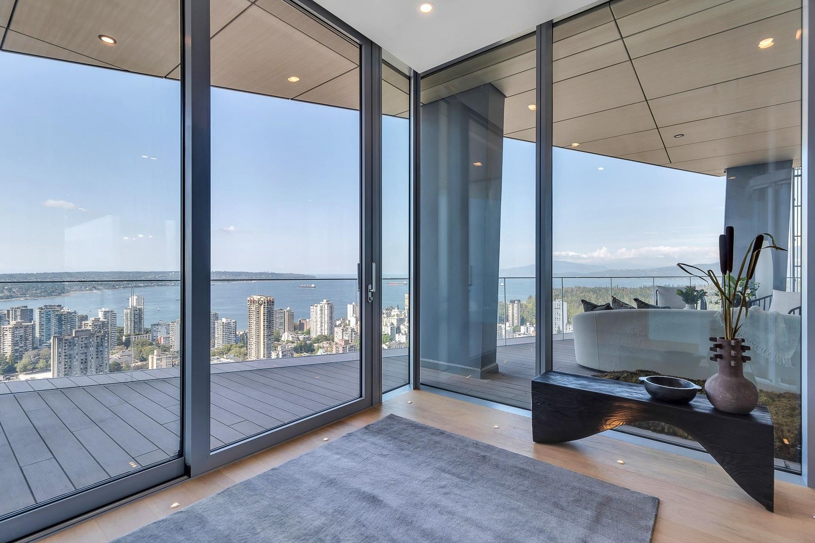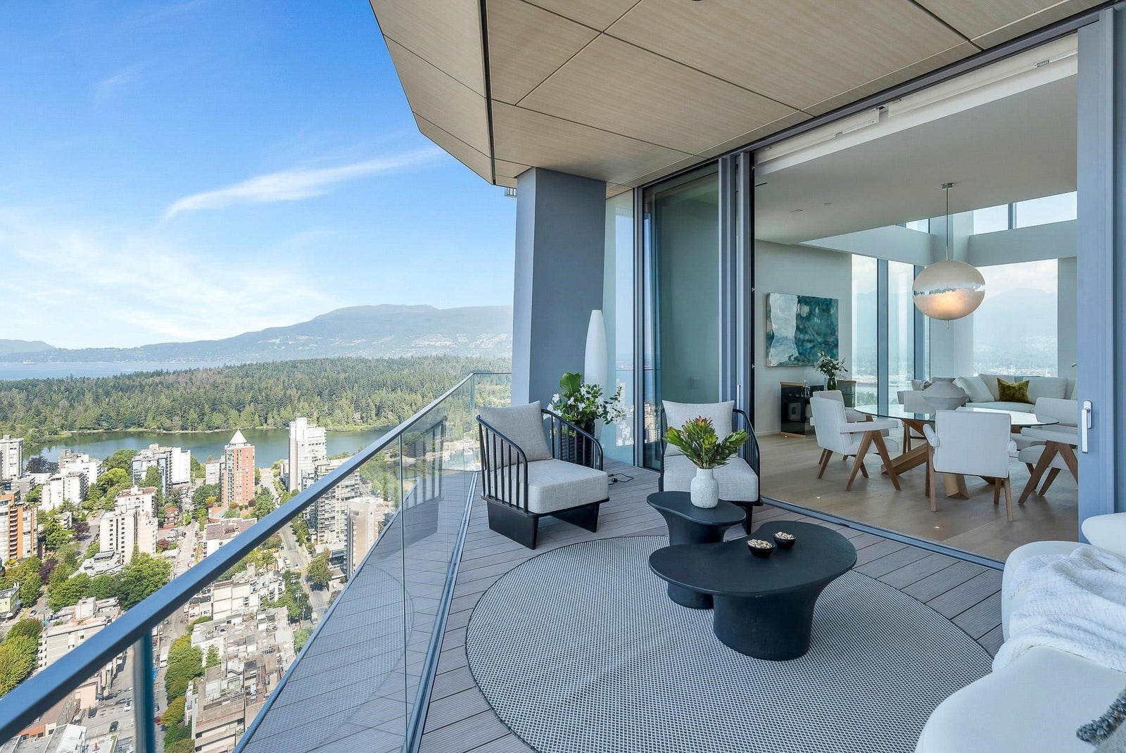 Arguably THE #1 View Penthouse in Vancouver! The Crown Jewel of "Alberni" by renowned Kengo Kuma. This spectacular skyhome is bathed in natural light and encompasses views - Coal Harbour, Mountains and English Bay. Simply stunning! The massive living and dining area with 20 ft ceilings sparkles like diamonds by the reflected light of the private glass bottom swimming pool & spa above. Ascend the open staircase clad in bleached white oak or the private glass elevator to one of the 3 huge outdoor terraces(total 2,283sqft). Int upgrades by Fruition Design exclusive to this home include: Brazilian "Laguna Bay" quartzite countertops, suede wallpaper, lighting by artist Enzo Catellani & Bocci. Primary bed w/outdoor soaker tub. 4 wine lockers, 2 DBL garages, 24/7 concierge world class amenities.