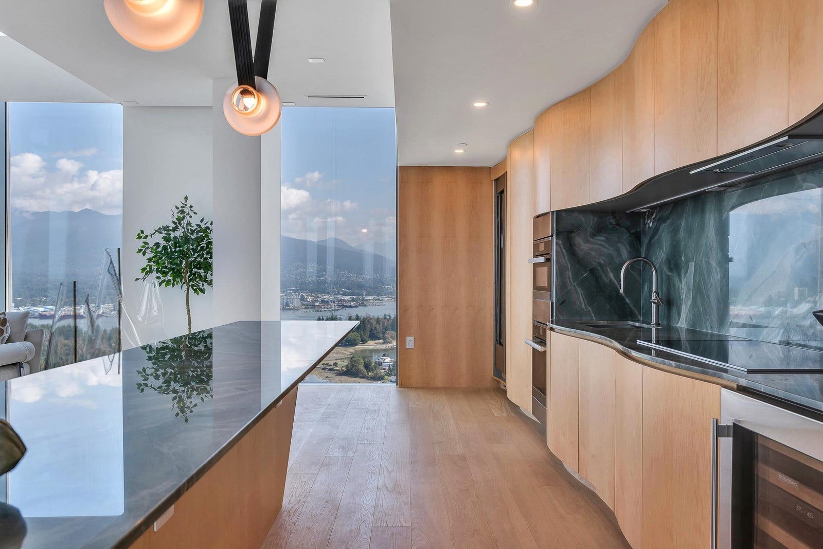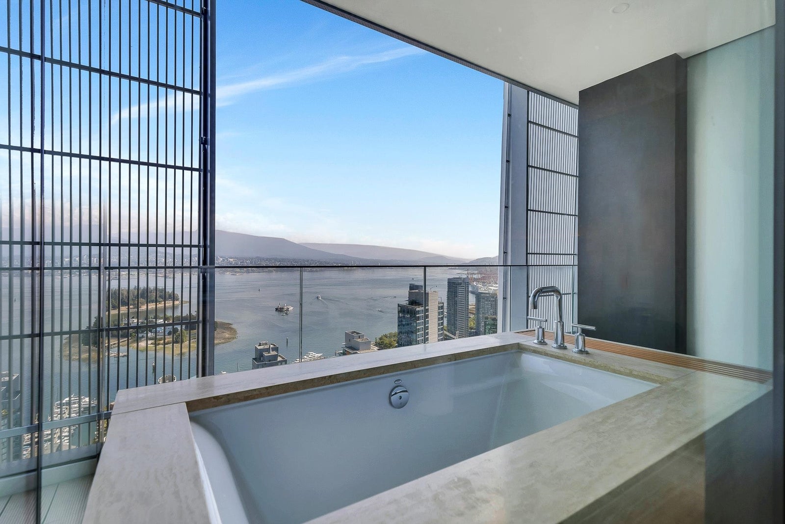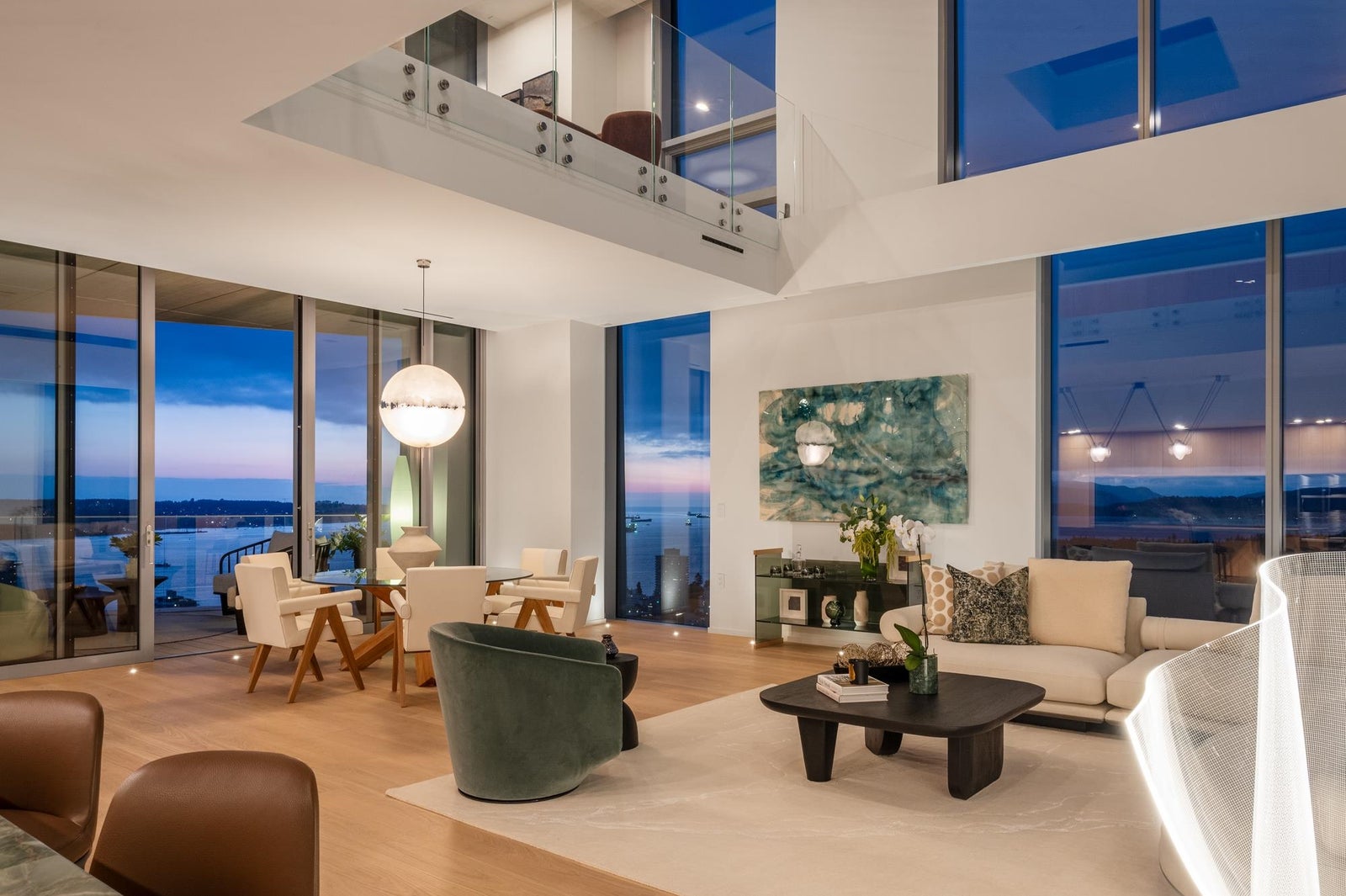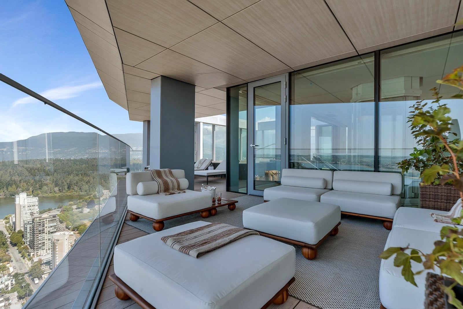 Arguably THE #1 View Penthouse in Vancouver! The Crown Jewel of "Alberni" by renowned Kengo Kuma. This spectacular skyhome is bathed in natural light and encompasses views - Coal Harbour, Mountains and English Bay. Simply stunning! The massive living and dining area with 20 ft ceilings sparkles like diamonds by the reflected light of the private glass bottom swimming pool & spa above. Ascend the open staircase clad in bleached white oak or the private glass elevator to one of the 3 huge outdoor terraces(total 2,283sqft). Int upgrades by Fruition Design exclusive to this home include: Brazilian "Laguna Bay" quartzite countertops, suede wallpaper, lighting by artist Enzo Catellani & Bocci. Primary bed w/outdoor soaker tub. 4 wine lockers, 2 DBL garages, 24/7 concierge world class amenities.