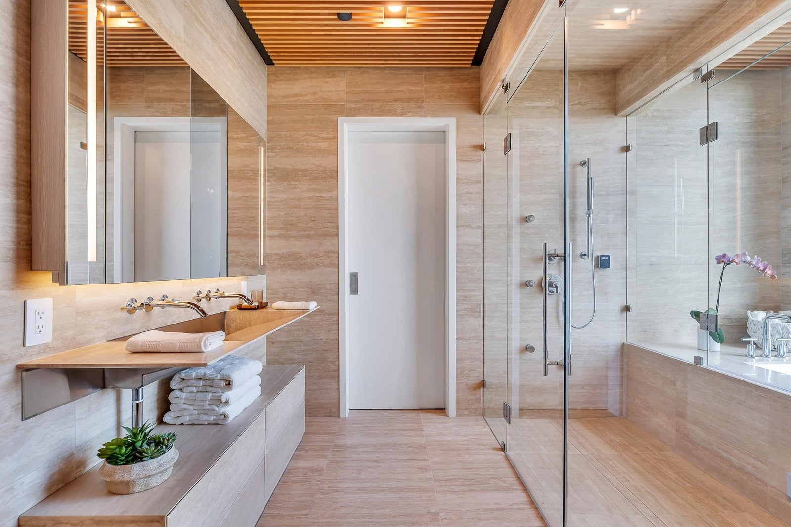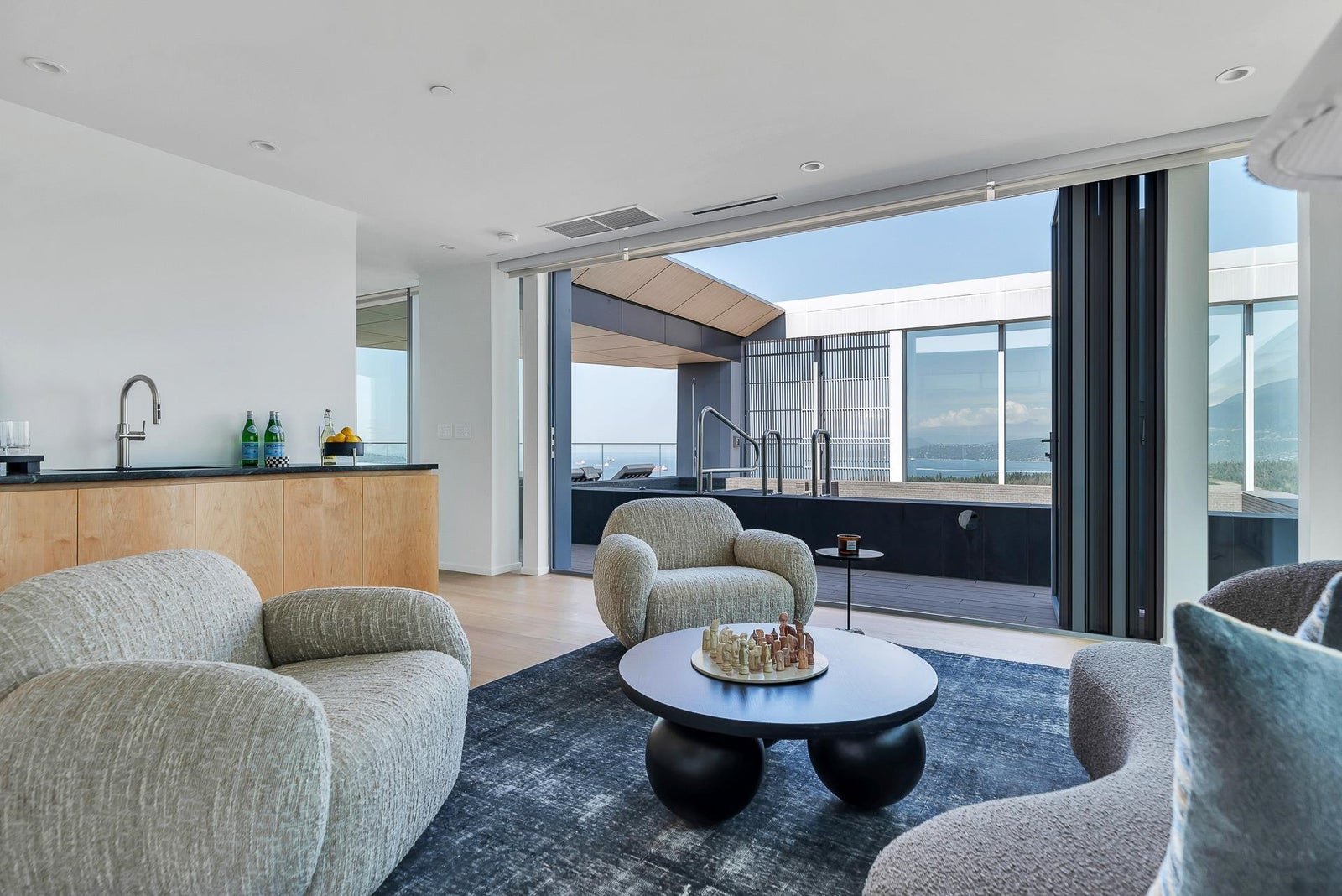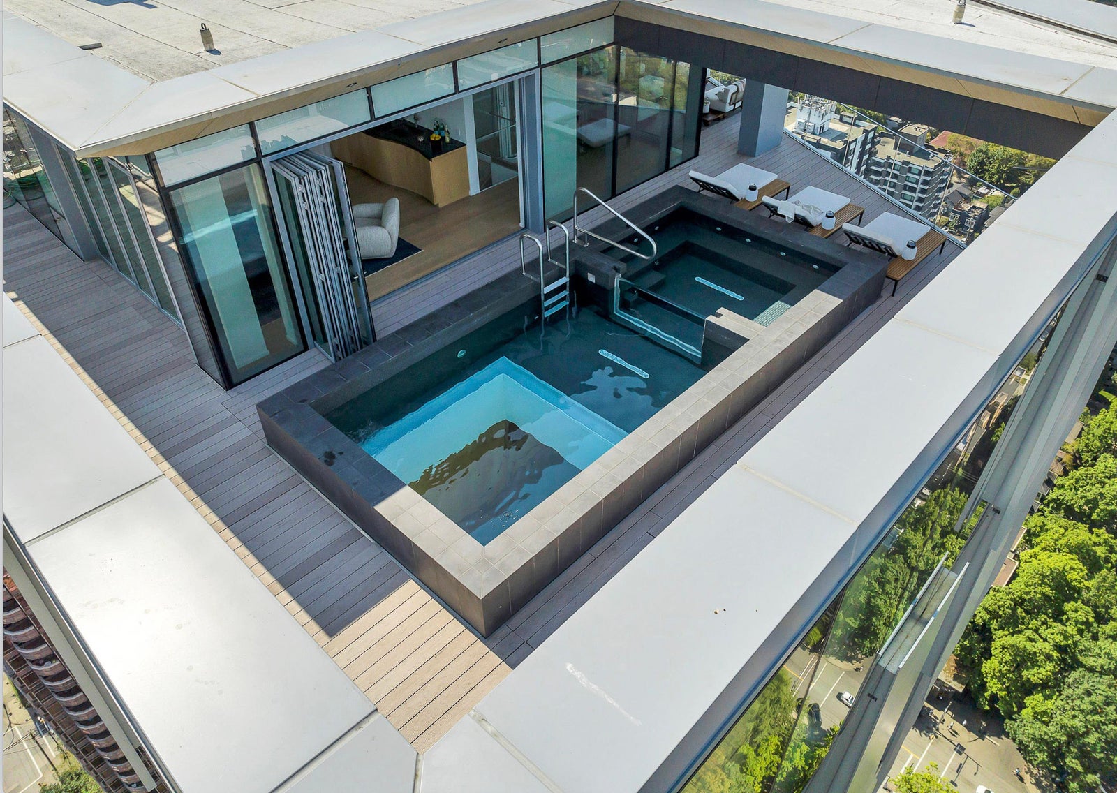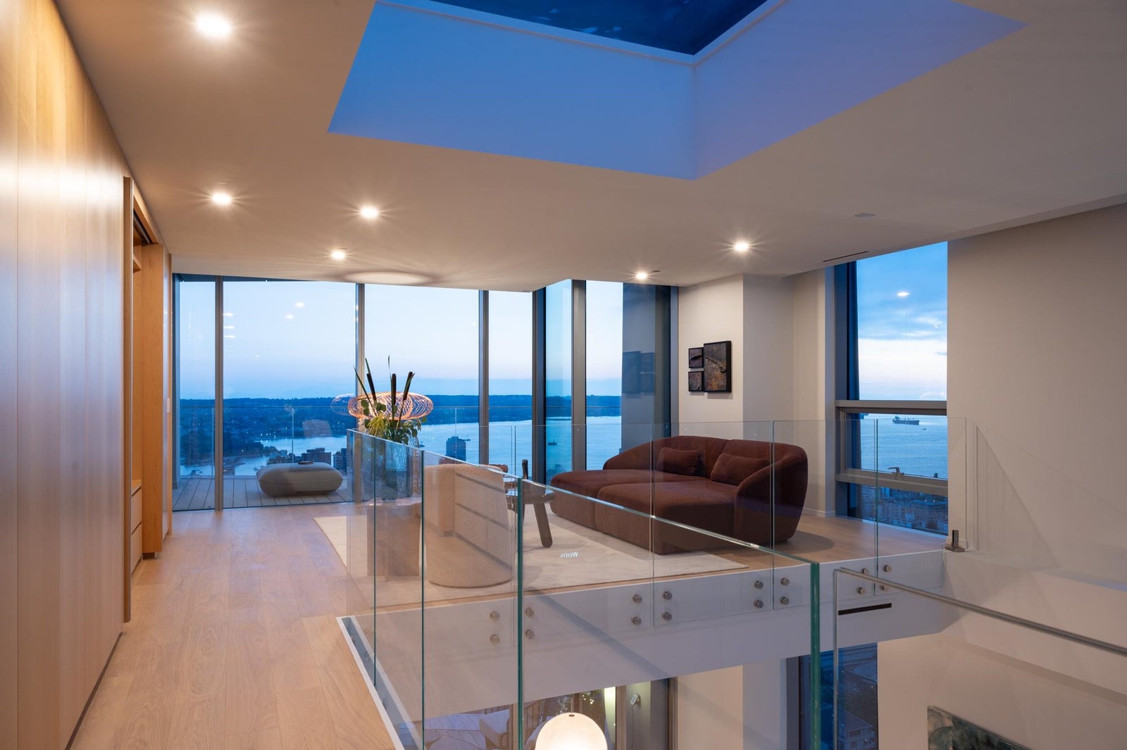 Arguably THE #1 View Penthouse in Vancouver! The Crown Jewel of "Alberni" by renowned Kengo Kuma. This spectacular skyhome is bathed in natural light and encompasses views - Coal Harbour, Mountains and English Bay. Simply stunning! The massive living and dining area with 20 ft ceilings sparkles like diamonds by the reflected light of the private glass bottom swimming pool & spa above. Ascend the open staircase clad in bleached white oak or the private glass elevator to one of the 3 huge outdoor terraces(total 2,283sqft). Int upgrades by Fruition Design exclusive to this home include: Brazilian "Laguna Bay" quartzite countertops, suede wallpaper, lighting by artist Enzo Catellani & Bocci. Primary bed w/outdoor soaker tub. 4 wine lockers, 2 DBL garages, 24/7 concierge world class amenities.