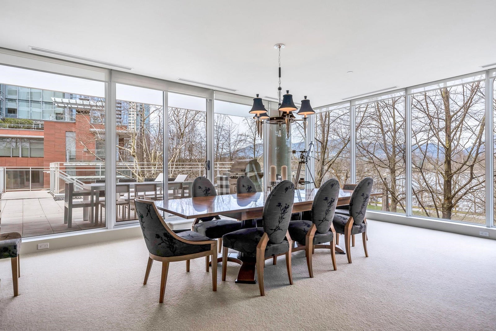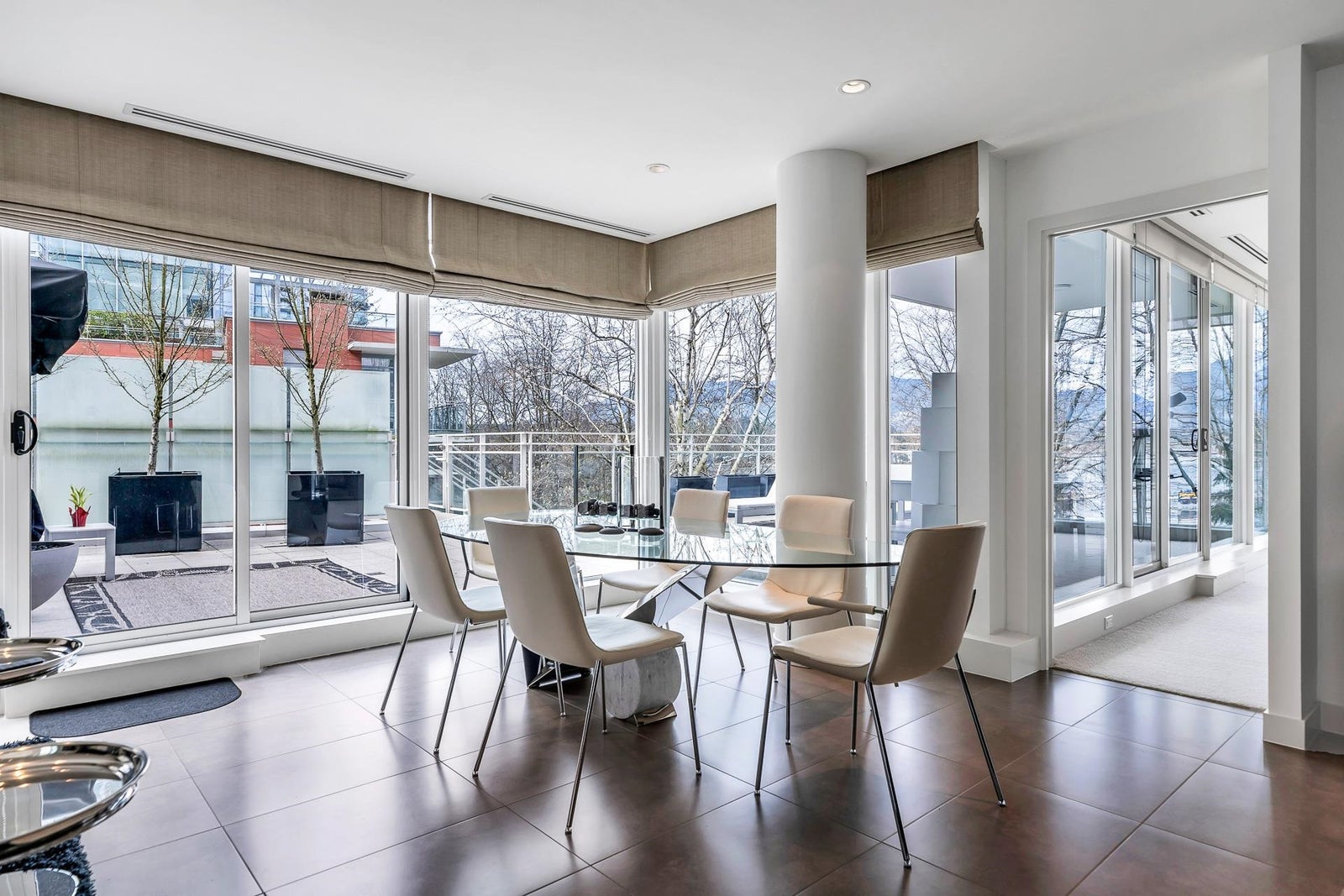 One of one luxury: A 5,450 SQFT waterfront TH at Two Harbour Green with direct access to a private 5-car garage and 2,000 sqft of terraces. The largest TH ever offered on the DT Peninsula, this extraordinary home presents an unparalleled opportunity for the discerning buyer, combining expansive scale and refined sophistication rarely found in the heart of the city.Over 40 ft of frontage with stunning views of Stanley Park, the harbour, and mountains. The upper level features 3 ensuite beds, primary with 2 walk-in closets. Designer Snaidero kitchen with Miele and Sub-Zero. The lower level offers a rec room with full bath, roughed-in wet bar, and customizable space for entertainment, extra beds/suite. Resort-style amenities: pool, gym, virtual golf, and 24-hour concierge.